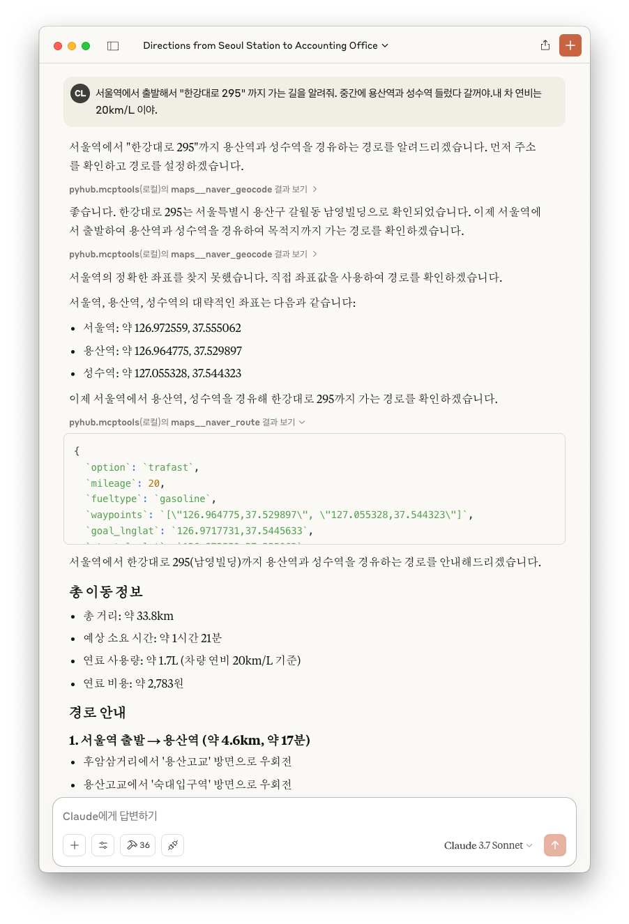 Geocoding API를 활용하여 주소를 좌표로 변환하며, 길찾기 도구에서 활용됩니다.