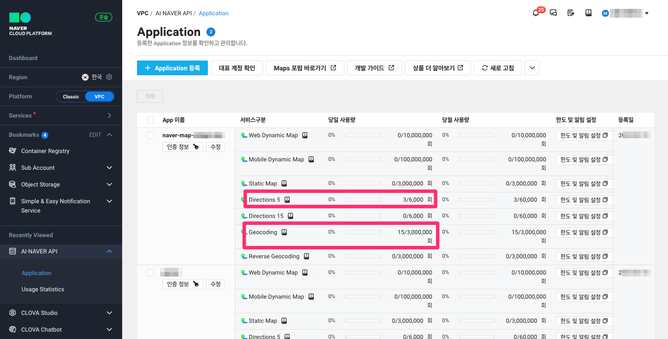 - 대상 API(7종) : Mobile Dynamic Map, Web Dynamic Map, Static Map, Geocoding, Reverse Geocoding, Directions5, Directions15
