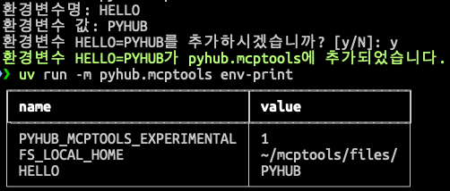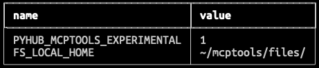"PYHUB_MCPTOOLS_EXPERIMENTAL": "1",