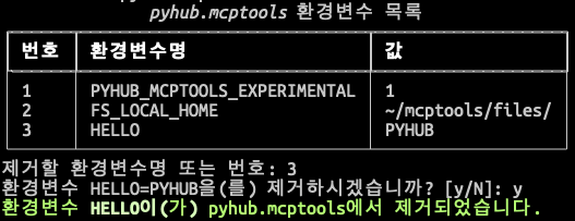 지정 MCP 호스트 (디폴트: Claude Desktop), 지정 MCP 서버 (디폴트: pyhub.mcptools)에 대한 환경변수 관리를